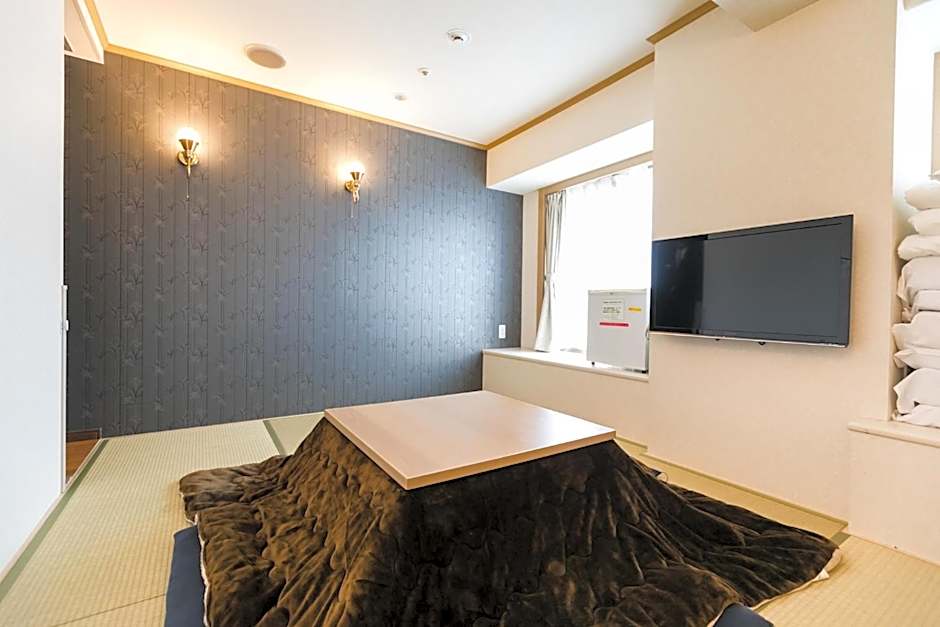 This Japanese-style family room has been recently renovated and includes a hori-kotatsu floor heater and tatami (woven-straw) flooring. Guests sleep in traditional futon bedding on the floor. This family room has cable TV, an electric kettle and air conditioning.